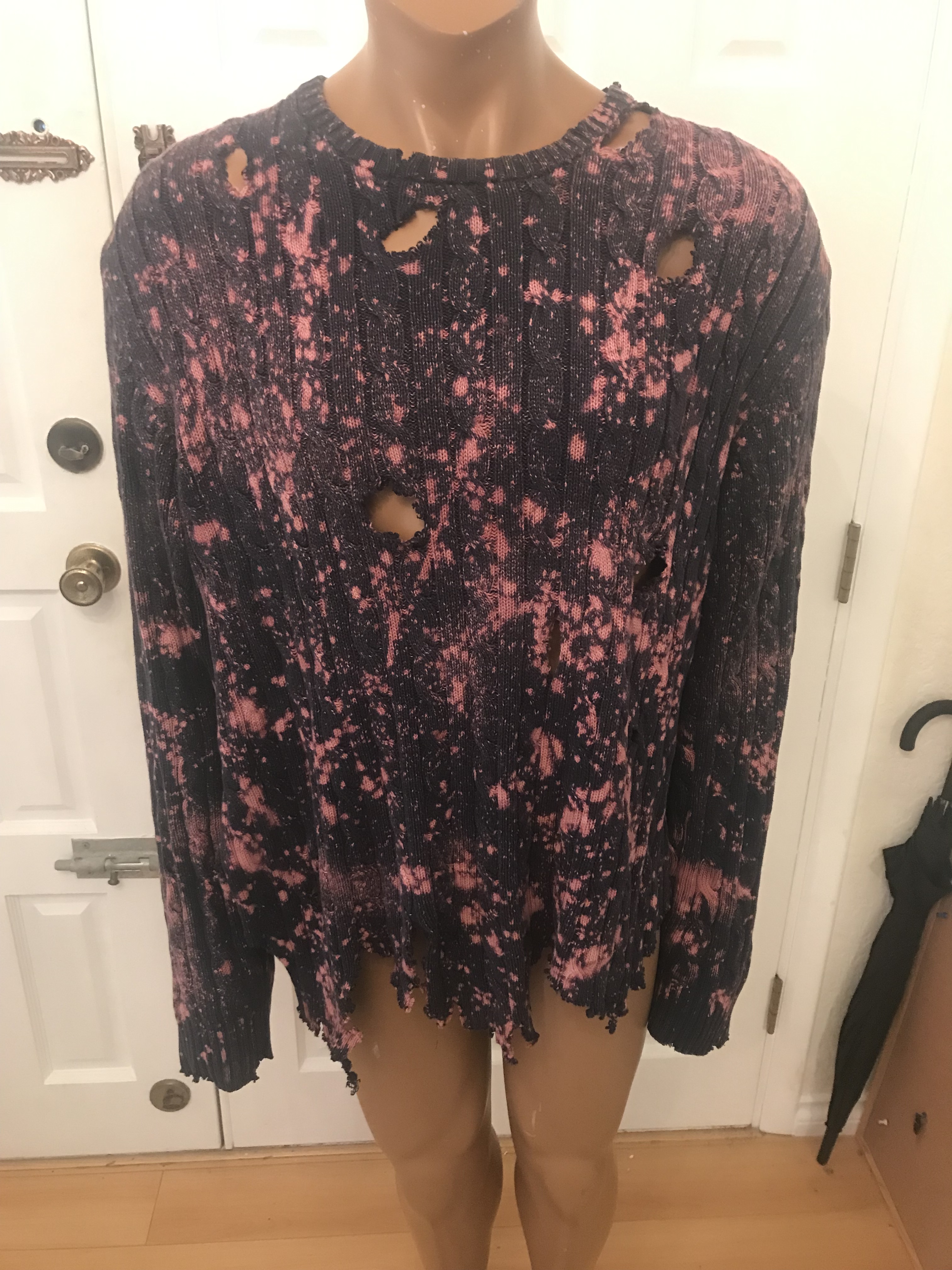 This is the fun part and since there are no rules, I enjoy mixing techniques. Check out http://www.psimadethis.com/category/diy/fashion for inspiration on clean embellishments and more. I have included a photo of an old sweater I distressed with scissors and bleach below.